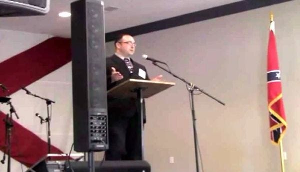 Lt. Doggrell reportedly joined the LOS in 1995 while in college after meeting LOS president Michael Hill; he was so intrigued by Hill's ideas that he served as chair of the University of Alabama's chapter -- hey, U of Alabama, did you know you have a chapter of a hate group there? -- and formed his very own chapter in 2009. As for Lt. Wayne Brown, SPLC had less information on his involvement with the League, simply noting that he and Doggrell had attended that 2013 convention together. A full video of Doggrell's speech has been on YouTube since 2013, but the SPLC only recently learned of it.