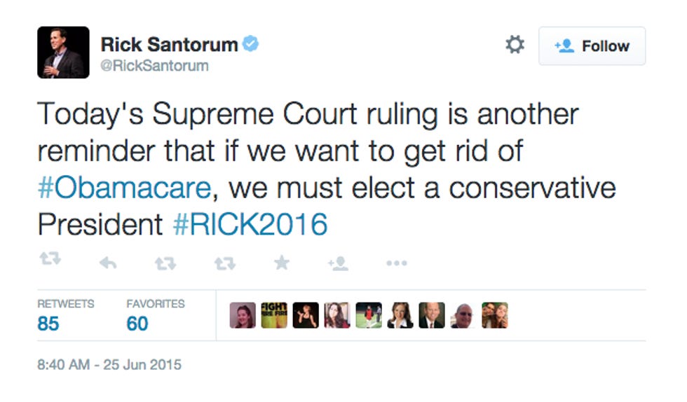 Every GOP candidate for the Republican nomination should know that this decision makes the 2016 election a referendum on the full repeal of Obamacare.
