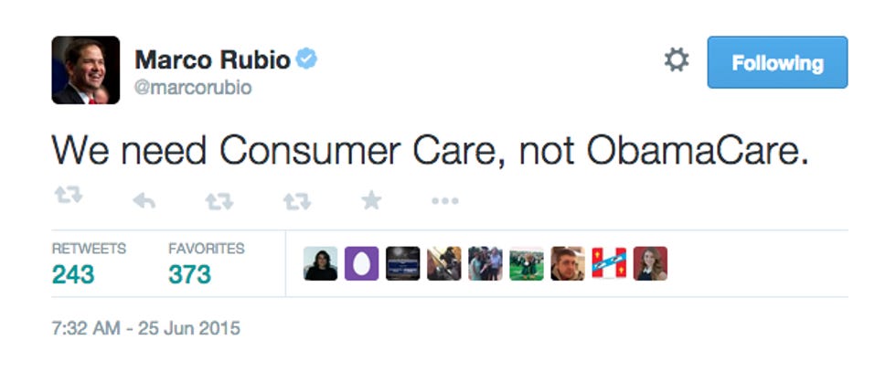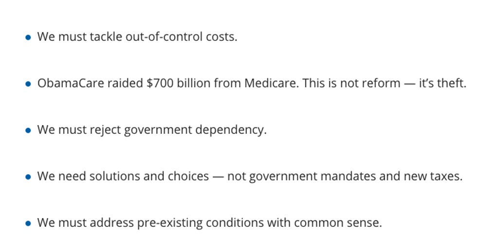 Rubio at least had someone type up a whole bunch of words on his website to describe his plan, which is basically tax credits, kind of like Obamacare, only different, and deregulating insurance companies so they can do whatever they want to consumers without those pesky DC regulations. It worked so well before Obamacare, no reason to think it wouldn't work again, right?