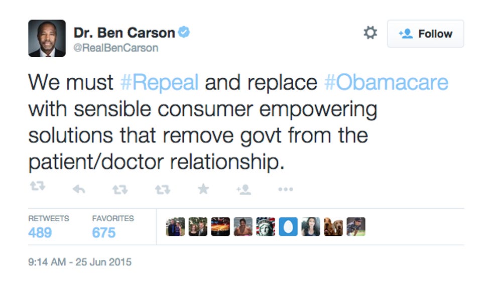 How's about Dr. Ben Carson, the medical doctor? Surely he must have some thoughts on how to improve healthcare in America: