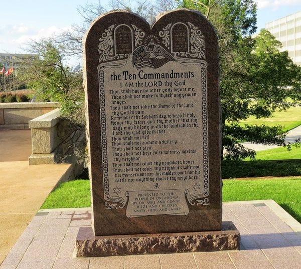 Dang. They noticed. Also, in another fun bit of trivia, the Oklahoma monument actually has eleven commandments on it. Go ahead, count 'em. At least they fixed the spelling errors.