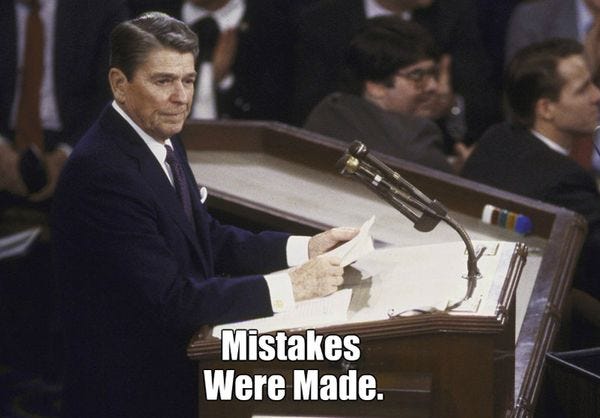 Walker also didn't mention that his hero, Ronald Reagan, was so tough on Iran that he sold them a bunch of missiles and other manned military equipment in the hopes of getting some other hostages released. Most people have heard of that one, but Republicans tend to have a pretty selective memory of it. At least he didn't travel quite as far down the Fail Trail as Rand Paul, who announced in April, "I believe in applying Reagan’s approach to foreign policy to the Iran issue." So score one (by omission) for Scotty!