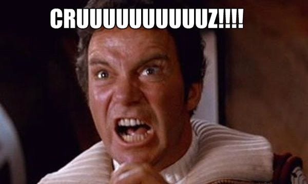 Ted Cruz, you're no Captain Kirk. Now, you might very well be a Harcourt Fenton Mudd ...