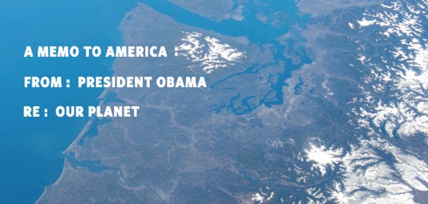 But, as the president is clearly in the FUCK IT stage of his second term, and also loves making Republicans all squirmy and uncomfortable when it comes to the environment and science, he does not appear to give a damn. This, he says, is "for the sake of our kids, for the health and safety of all Americans," because "we can't condemn our kids and grandkids to a planet that's beyond fixing."