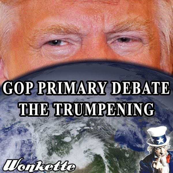 Didn't we all have such a good time laughing at the second-tier candidates' debate? We sure did! Now let's watch Donald Trump and the other guys have their turn. And hey, if you missed the Kids' Table debate from earlier today, like during "All My Children" or whenever it was on, go read Wonkette's live-blog of that, and catch up on all the news about how Lindsey Graham is going to die alone, Carly Fiorina sexts with Bibi Netanyahu and Rick Santorum used "optimism" to put seven babies in his wife's butt.