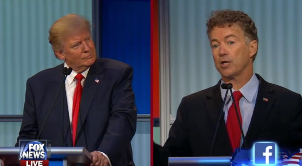 This was a terrific moment from the Republican debate that basically captured how almost everyone in America feels about Sen. Rand Paul, MD: What the hell are you talking about and why are you even here? He has, like, three "libertarian" stoner supporters, and the gay math wizards tell us that's not quite enough to get elected to the White House. Oh well.