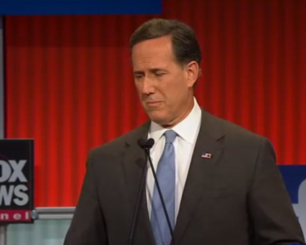 He is weird and gross, doesn't like sex, was fired by double digits by the voters of his home state of Pennsylvania, and has been whining like a little bitch about how it's NOT FAIR! that he had to sit at the kids' table even though he was "runner up" in the 2012 Republican primary. "Runner up" is not actually a thing. Also, he has only one supporter in Iowa. Her name is Peggy. She probably doesn't even like him anymore either.