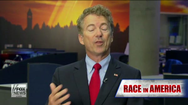 Noted race expert Rand Paul chatted with fellow race expert Sean Hannity the other night, and the senator from Kentucky had some terrific advice for Black Lives Matter, for which its leaders will no doubt be sending him an Edible Arrangement to express their gratitude. Sure, the movement has recently released its own platform,called "Campaign Zero," detailing 10 policy solutions, none of which are "cut taxes"or"more dads and better morals." So clearly, they're in need of Rand's expertise. Tell 'em how they can best achieve their goals of combating police violence in their communities, Senator: