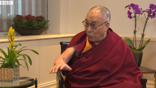 LOL, Lama, he laughing so hard, maybe he is joking about how he's not joking. Or maybe he's been watching too much Donald Trump, and he's like, "No one is gonna elect that face to the job of Dalai Lama!" Or maybe he's just a typical man after all.
