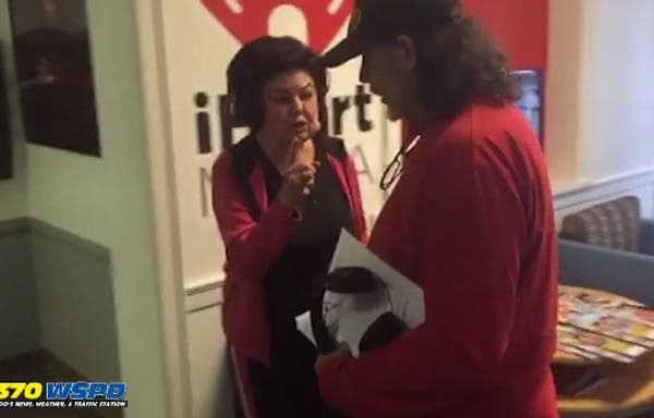But then Fred the DJ pointed out that, since she (LOL) hasn't ever been elected mayor, she's actually, BIBLE FACT, a false prophet. WHERE'S YOUR CHRIST NOW, DEVIL WOMAN? That's when the shit hit the fan: