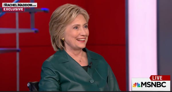 And she nailed it. Nicely done, Hillz. (We'd give you more context, but you're supposed to be watching the Maddow interview, you see.)