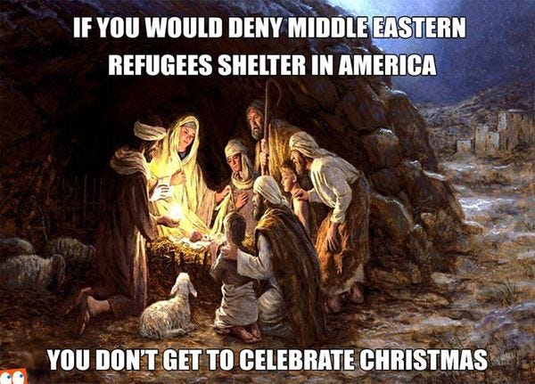 Just a thought, you monstrous hypocrite. It would be interesting, as a discussion question, to see if Cruz and Bush would allow any refugees in who were so wholly ignorant of one of the most basic of Christ's teachings.