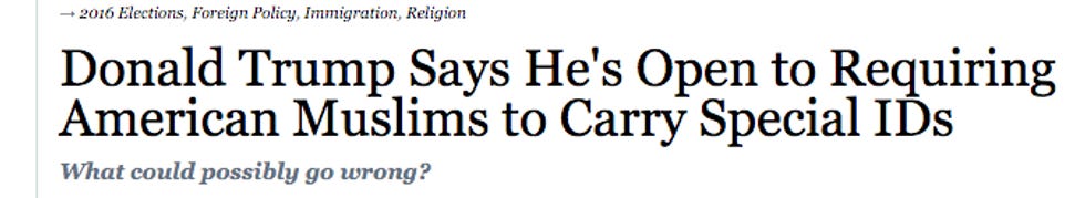 Verdict: Donald Trump said a REAL fucked up thing, about registering Muslims in databases. He said it to NBC, and not to Yahoo. Thanks, NBC!