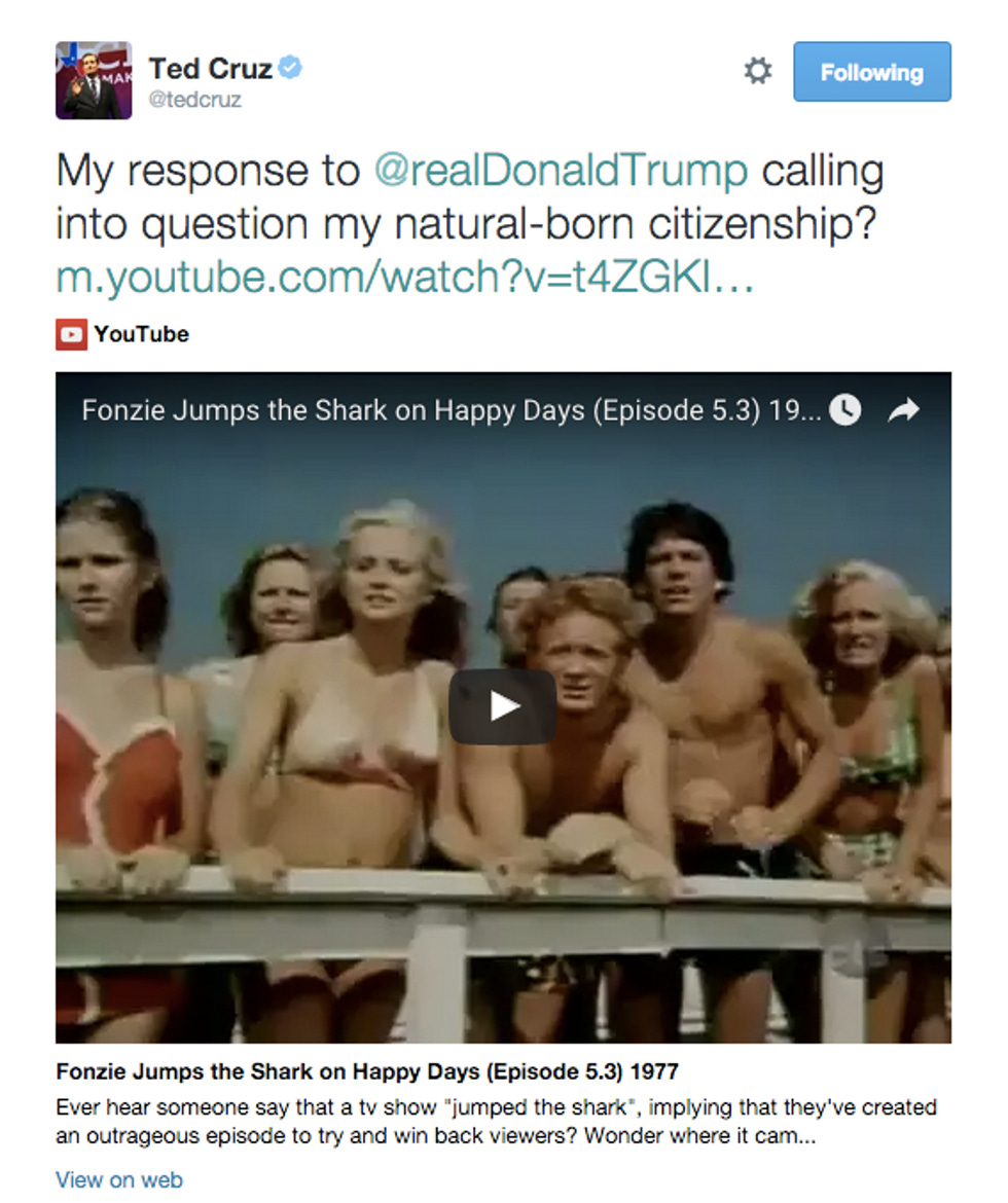 Better stop looking so good in those polls, Sen. Cruz, or The Donald might have to send his team of private investigators after your so-called birth certificate too.
