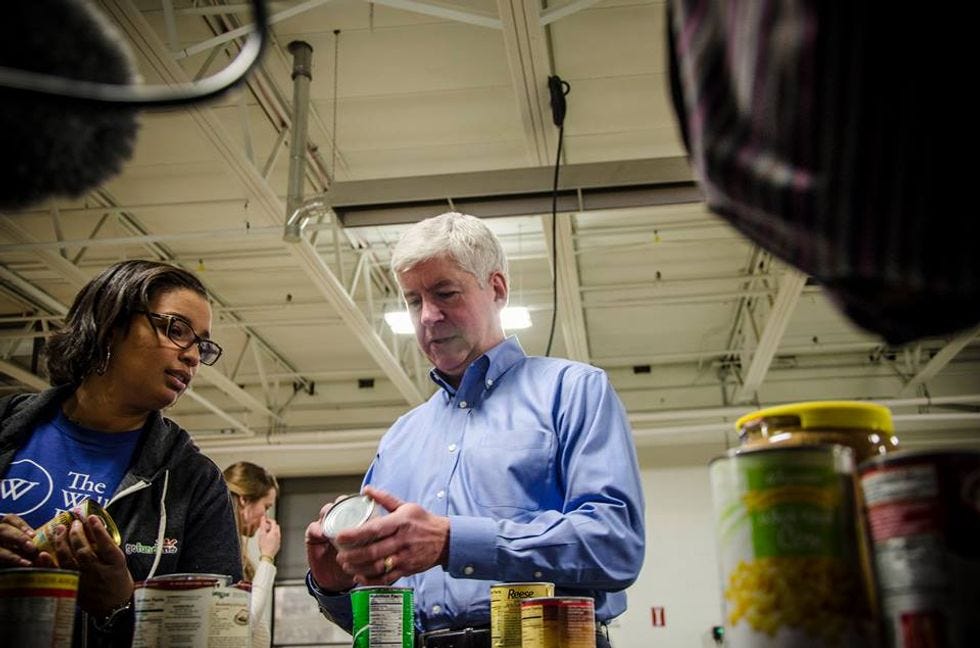 Yeah Hillz 'n' Bern, how can you even say you care if you're not going to personally stay in Flint and siphon the lead out of the water with your loud libtard mouths, HUH? Rick Snyder is going to do that, with "long-term solutions" and whatever. Maybe he is going to "fix this crisis" by curiously gazing at canned ham, because that's the picture he chose to accompany his FaceSpace post: