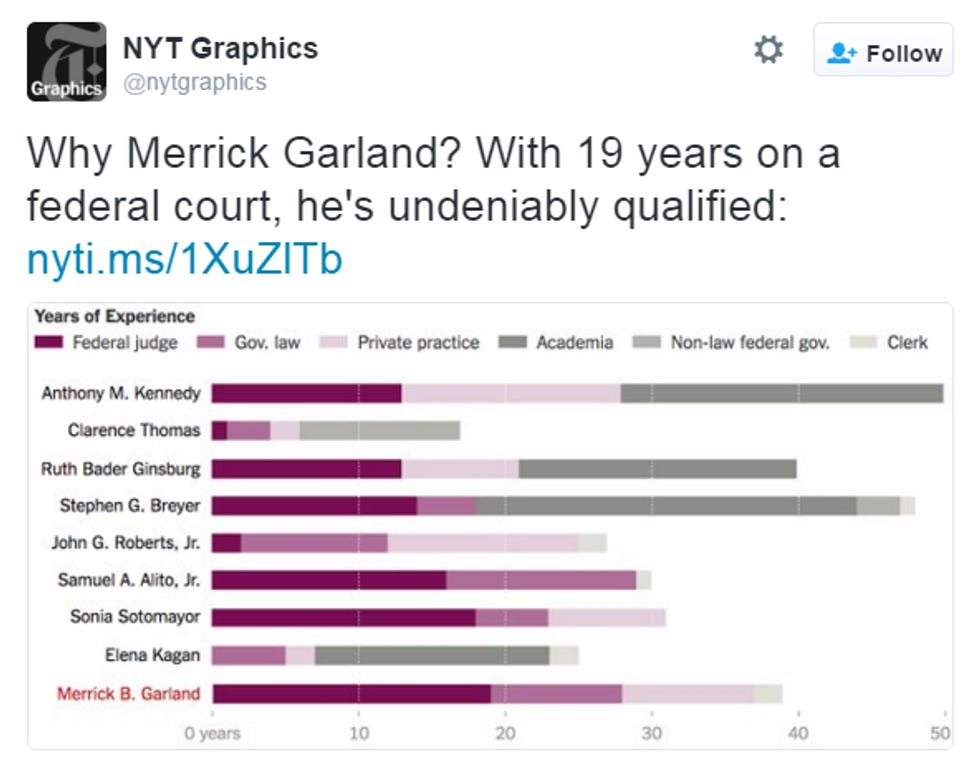 Oh, and here is a lovely graphic, also shared by the New York Times , that shows Garland has more experience as a federal judge than any current SCOTUS justice: