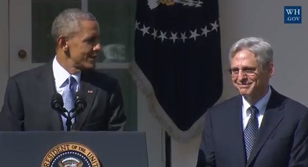 Obama said Wednesday that "the one name that has come up repeatedly from Republicans and Democrats alike" for the Supreme Court is Ol' Merrick. Also too: