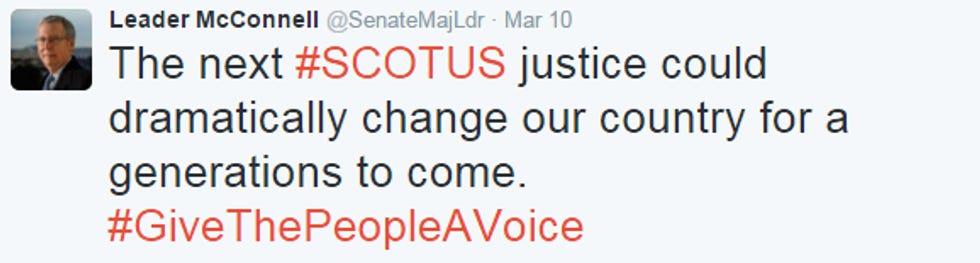 The American people HAVE a voice. That's why they/we chose Barack Hussein "Suck It, Fools" Obama to be president until January of 2017, you sniveling fuckstumps. They will continue to have a voice after that date, when Hillary Clinton will be responsible for making Supreme Court nominations.