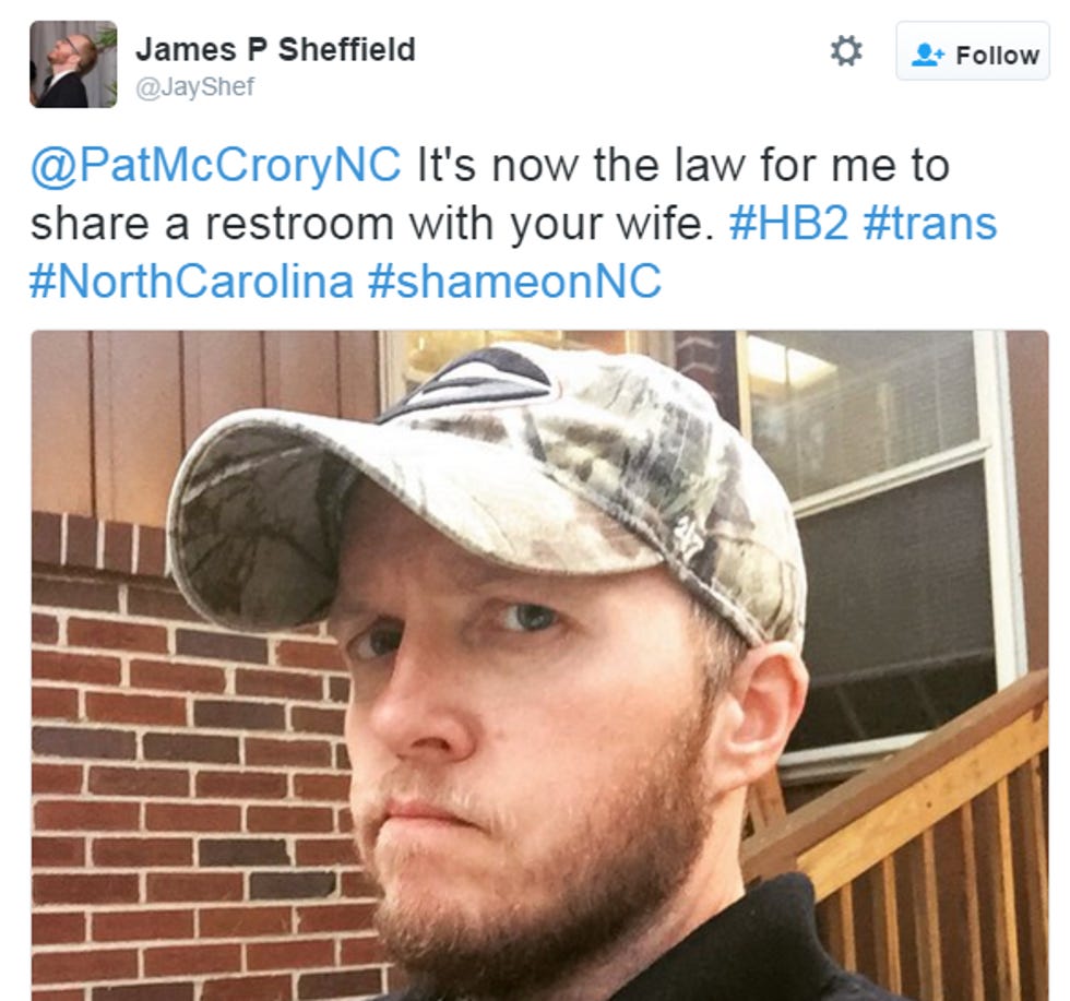 GET IT? THAT'S A MAN. And North Carolina Republicans just shoved him into the ladies' room!