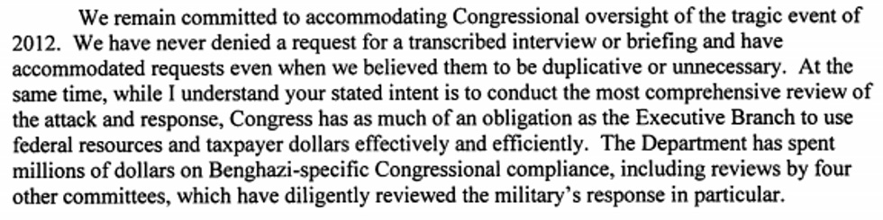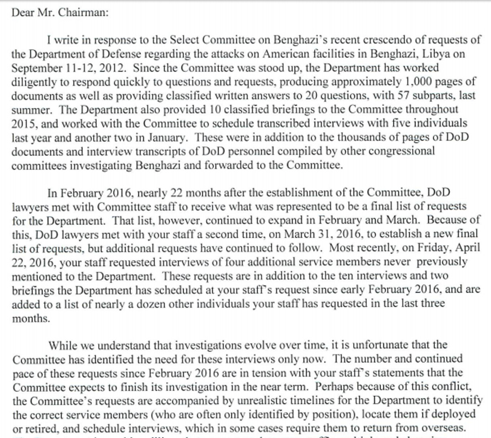 "I write in response to the Select Committee on Benghazi's recent crescendo of requests ..."