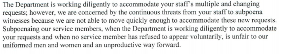 "Subpoenaing our service members ... when no service member has refused to appear voluntarily, is unfair to our uniformed men and women, and an unproductive way to move forward."