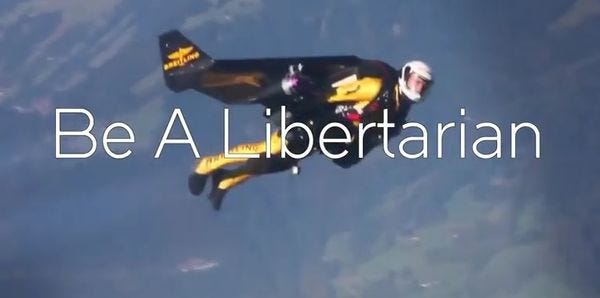 The ad offers some very deep thoughts on the American political system, like the onscreen text informing us, "Every four years Americans come together to bully their neighbors" and "Politics is dying. Kill politics so it can be reborn. Be a Libertarian."