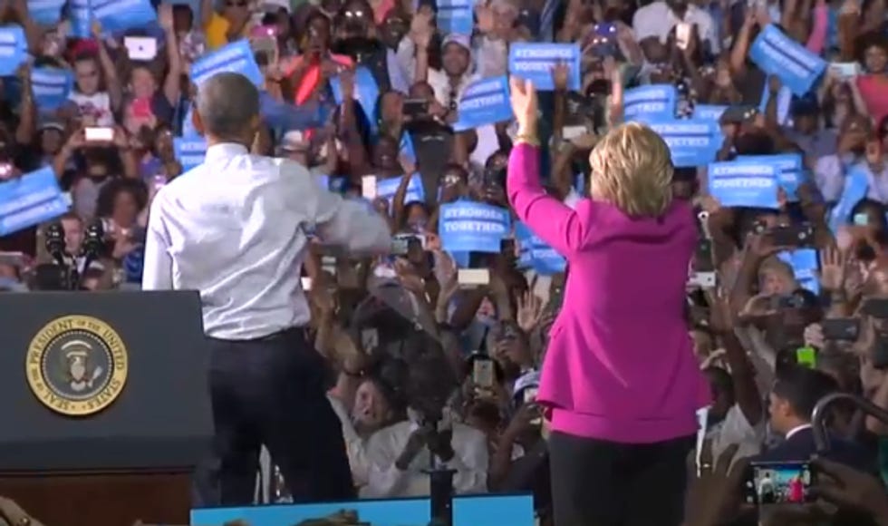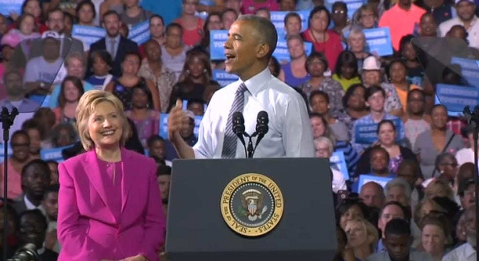 Did you hear the big news, that Hillary Clinton and President Barry Bamzalicious Supa Dupa Fly campaigned together in North Carolina today? They had so much fun talking about #things and also #stuff, and specifically about how boys named Barack and girls named Hillary rule, whereas #TrumpDrools.