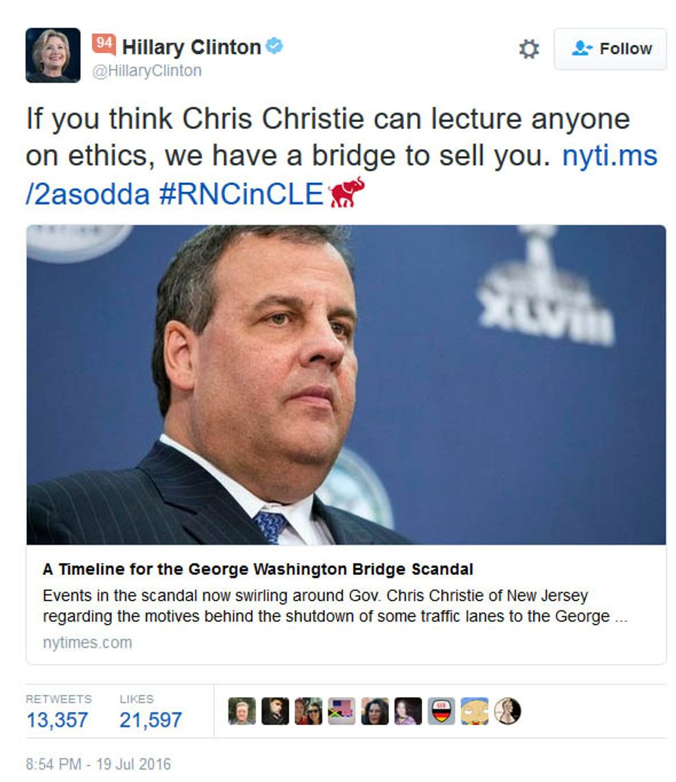 Let's remember that Trump has his own potential criminal investigation looming due to repeated FEC violations, and consider the fact that Chris Christie has his own ethical scandal with Bridgegate, so he's probably one of the last people that should be making any sort of ethical indictment.