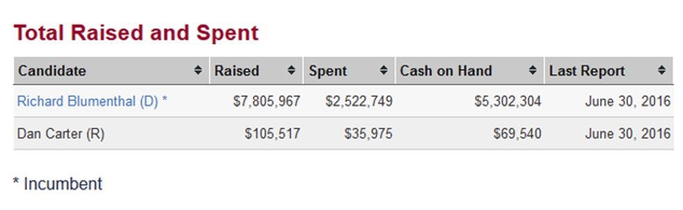 We will close our look at the Connecticut race for the Senate with this little chart comparing fundraising for the two candidates: