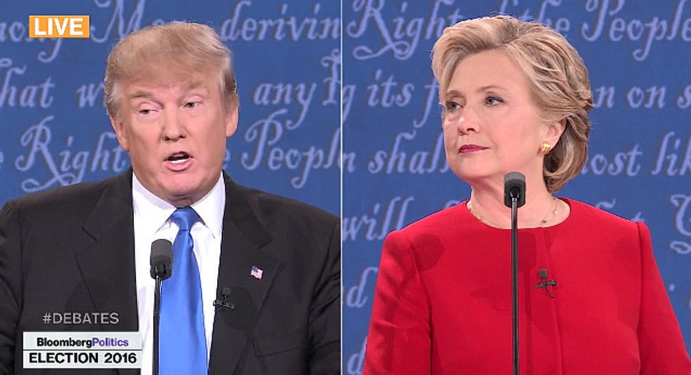 9: 18 PM: There's a lot of back and forth already -- Donald interjects when he disagrees, and Hillz steamrolls over it -- but her energy is up and she's bringing up quick, pertinent points about YO THE ECONOMY BREAKS UNDER REPUBLICANS. I honestly have no idea what he's talking about, because he rambles too much. But here: "You've been doing this for 30 years. Haven't you thought of a solution to the economy or whatever?" (That is not a direct quote, because the boys in the chatcave are all DYING OF CONSUMPTION.) And she breaks into a big pretty smile: "Actually, the economy was pretty good under my husband." But Trump is filibustering, and people will probably believe him because there were very many words.