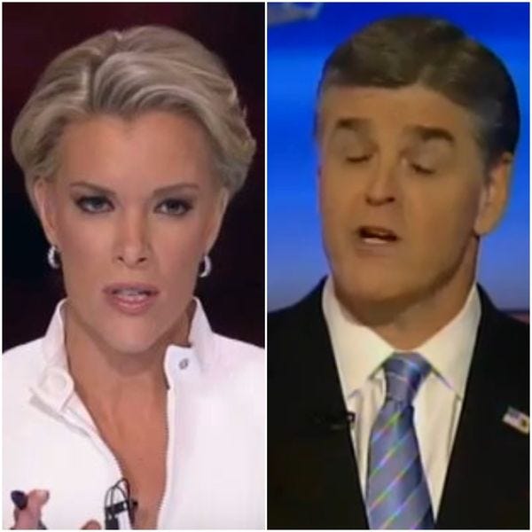 At press time, our sources (that we made up just now) reported that Megyn Kelly was chasing dumb Sean Hannity around the Fox News offices, repeatedly pants-ing him and shouting, "SAY MY NAME, SEAN HANNITY! SAY MY NAME!"