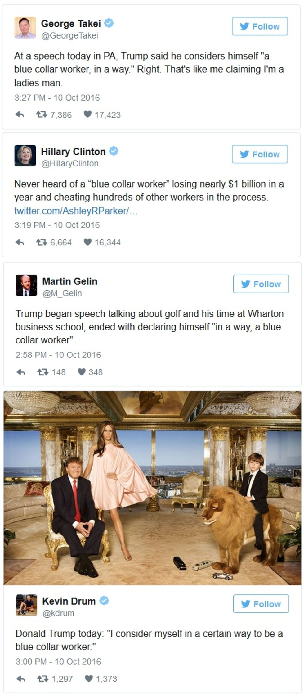 Trump has never worked in any capacity that could, under any conventional definition, be interpreted as “blue-collar” labor.