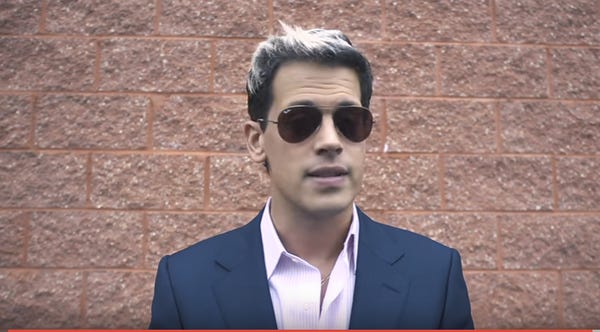 Fatuous sparkleturd and Breitbart scribe Milo Yiannopoulos is hoping that his new video, featuring a burning rainbow flag, will convince LGBTQ Americans to VOTE TRUMP. He implores them, in his best, most sincerest-est "Sarah McLachlan narrating an ad about shelter dogs" voice, to understand that Donald Trump is the only man who is going to protect them from EVIL MUSLIM IMMIGRANTS who are definitely going to come over here and murder them.