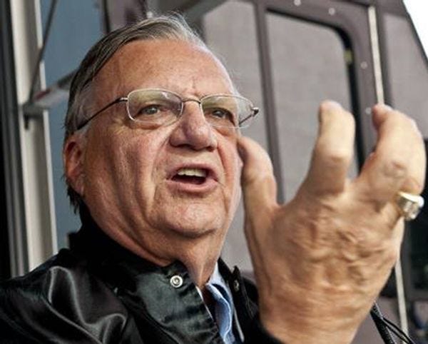 Speaking of being held accountable: Arpaio remains under indictment on federal criminal contempt of court charges for ignoring a federal judge’s 2011 order to cease immigration patrols based on racial profiling; if convicted, he could face six months in prison. Arpaio was one of Donald Trump's most prominent supporters, so let's all be on the lookout for either a pardon (unlikely) or vengeful firing of anyone in the Justice Department who came anywhere near the case against Arpaio, or at least pressure from the White House to drop the case (almost guaranteed).