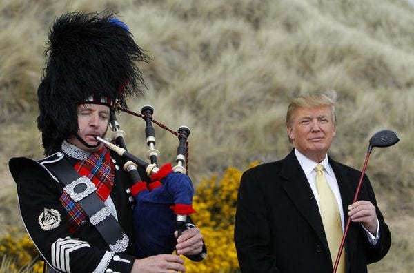 The poem itself is meant to be an ode to Trump's Scottish ancestry, and it's received some press already over the fact that it refers to President Obama as a tyrant -- but honestly, that is not even the dumbest part of it. It is a tale told by an idiot, about an idiot, and what it lacks in sound and fury, it makes up for in absolutely nothing.
