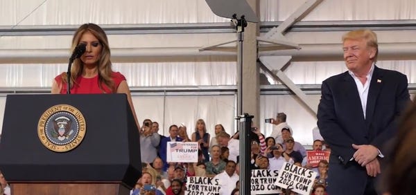 So, Melania read the Lord's Prayer at the little Nuremberg rally her husband Pussgrab threw in Melbourne, Florida, and it was obvious she doesn't really know it, at least not in English, which is surprising because she's lived in America for 20 years and the Trumps have such a long history as active Christians. Here, watch it, so we can be terrible liberals and mock it and GET OUTRAGED!