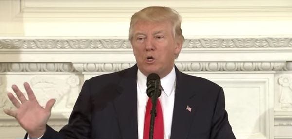 Trump also explained that the smartest political move Republicans could do would be to do nothing about the Affordable Care Act for a couple years and let it collapse of its own weight, since it clearly doesn't work, despite resulting in record low uninsured rates, covering some 20 million people who hadn't had insurance before. But he warned that would be wrong, not simply because people who have insurance might be even more resistant to having it nuked two years from now, but because it would be morally wrong to let the system collapse. If it does. (Of course it will. Everyone hates it so much they signed up in record numbers at the end of 2016.)