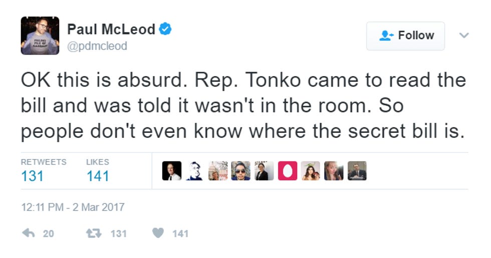 Rep. Paul Tonko, Democrat of New York, came to take a looksee at the bill. After all, he is a member of the House in good standing, and should be allowed in to the basement sexxx room where all the best bills are kept, yeah? Nah, he is a Democrat, and this secret fun dungeon is only for the GOP: