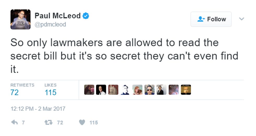 A weird thing happened in Washington today! We learned Wednesday night that House Republicans had drafted some portion of a bill to repeal and replace Obamacare, but NOBODY BUT HOUSE REPUBLICANS would be allowed to see it, because they can't handle the truth we guess.