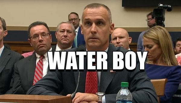 Trump's slap happy boot licker Corey Lewandowski brought his made-for-TV shit show to the Hill for Democrats' first "impeachment hearing." If, like us, you watched until your liver demanded a good pickling, Lewandowski and Republicans' farcical water carrying isn't a surprise. Once Barry Berke, legal counsel for the House Judiciary Committee, took over the questioning, we were treated to a remarkable moment where Lewandowski admitted he's a goddamn liar who should have called the FBI about Russian fuckery in the 2016 election, and that he Trump told him to lean on Jeff Sessions during Robert Mueller's probe into said Russian fuckery. [ Morning Maddow ]