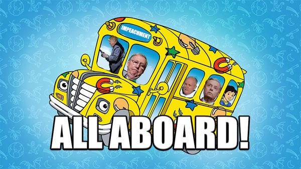 Senate Republicans SAY they aren't going to watch the impeachment hearings because they have better things to do. Lindsey Graham even went so far as to call it "bullshit" twice. Politico gossips that Democrats know they're making one hell of a gamble with impeachment, but they're confident they'll be able to pull this one out.