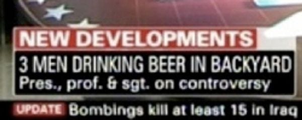 OMG THEY'RE DATING!Obama was playing matchmaker all along: "CAMBRIDGE (WBZ) ― Harvard Professor Henry Louis Gates and Cambridge police Sergeant James Crowley were spotted at a pub in Cambridge Wednesday night. The owner of 'River Gods' told WBZ the two sat in a booth together and talked for about an hour." Who slipped whom the mickey? [ WBZ ]