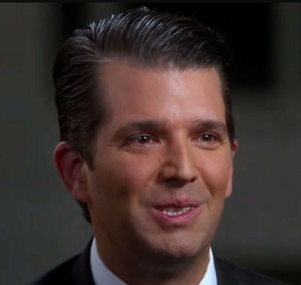 Oh yeah, and also the committee would presumably like to nail down the truth about whether people (like Daddy) were aware he was about to have a Russian meeting in Trump Tower to get dirt from the Russians on Hillary Clinton (for Daddy). The Mueller Report and Michael Cohen's testimony to Congress seem to suggest maybe Daddy knew, since Dipshit had blurted out during a campaign meeting not long before the meeting that he had a hot lead on some hot dirts on the Clinton Foundation. (The Mueller Report also seems to suggest Junior is too physically stupid in his brain to be indicted.)