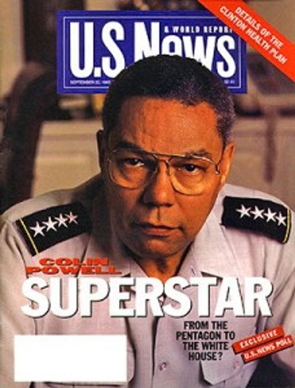 Everybody expected Colin Powell to endorse Barack Obama today, on the teevee, and guess what? Colin Powell endorsed Barack Obama! Considering Powell's professional and political service, it's maybe not so surprising that he'd prefer the sane, thoughtful Obama to the unhinged nut McCain. After all, Powell had his happiest time in Washington working for the first President Bush, and the first Dick Cheney, too! (That was the Cheney who, while still a racist right-wing dick, was still involved enough in reality to know you don't go topple Saddam and occupy Iraq.) Anyway, enough of the "analysis." Let's get to the Webnuts and their usual response to another Republican bigwig endorsing that African Communist Nazi City Slicker!