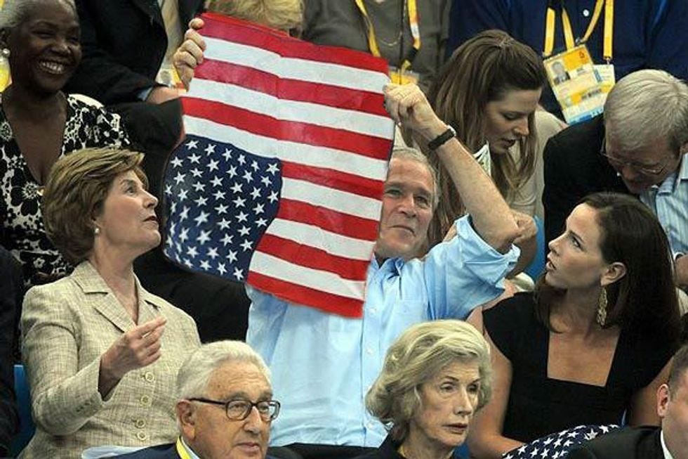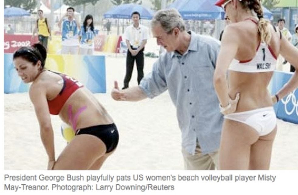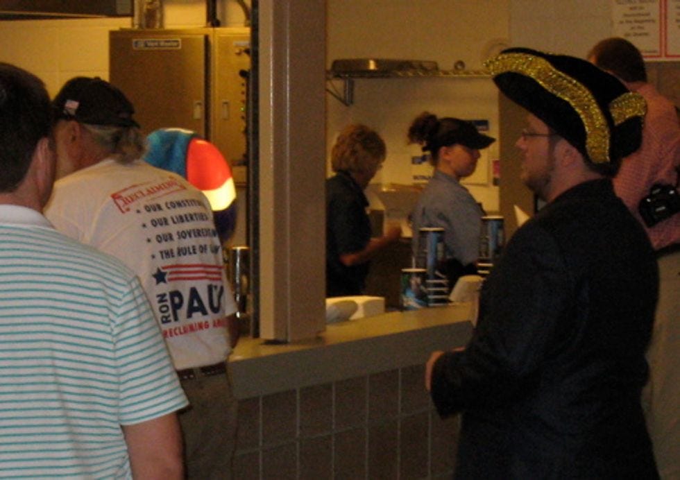 Oh look, a fat white guy dressed in fake "western wear," riding a horse on a sidewalk or something. Was this the opening of a used-car lot in Fairfax? BETTER: This was the campaign of big dumb racist turd George Allen, who lost his Senate seat in 2006 to a super-crazy Reaganite called Jim Webb, who literally wore combat boots everywhere, which was not quite as ridiculous as Allen wearingcowboyboots everywhere. Anyway, George Allen said a word ("Macaca") to some guy from the Daily Kos or something, we cannot remember, but ALL HELL BROKE LOOSE and the Democrats won the House and then won the Senate plus the White House and then liberal bloggers denounced the African-American liberal president, the end.