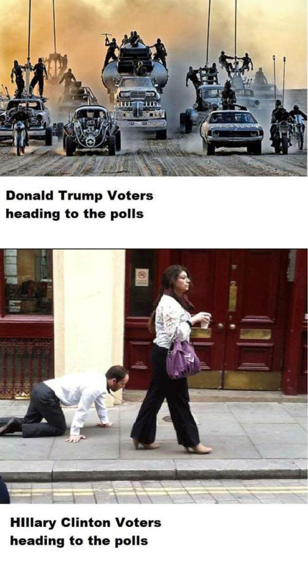 Heartiste explains that male Clinton supporters will be SO TOTALLY HUMILIATED that Trump supporters are cool Mad Max guys (as David Futrelle points out at We Hunted The Mammoth, dude must have not seen the movie ), that they will immediately decide to NOT be beta males and vote for Trump instead.