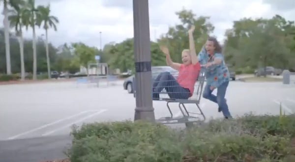 Also I really can't tell what's supposed to be going on with the long-haired guy. Is it supposed to be a Ross and Rachel thing? If so, why is he so incredibly creepy and repulsive? Are we supposed to not want to abort his baby? Why are they doing the Monkees walk? Why is she in a shopping carriage? What is happening here? Is the other guy her boyfriend? If so, is her search for love not over? Does she not now know what a girl is to do?