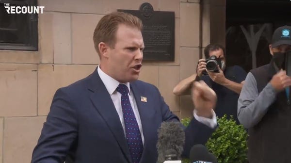 Andrew Giuliani — who is the son of Rudy Giuliani, which means half of his genetic makeup came from Rudy Giuliani's balls, which is why his face looks like that; and who is also under the impression he might be the next governor of New York, which is adorbs — has thoughts on the FBI raiding his dad yesterday.