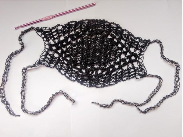 Even if it were not a crappy pattern, I think it would probably take about two hours to make if you hadn't made it before. Imagine taking two hours out of your life to spite crochet a face mask that doesn't work!