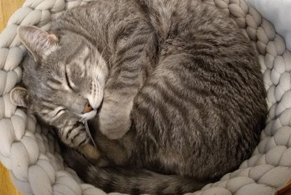 Afghanistan and COVID and terrible politicians will still be there and we'll still have to deal with them. For the moment here is a contented kitty who is curled up as if it were winter already, but that's more because, as a liquid, he's obliged to fill the shape of his soft fabric basket bed.